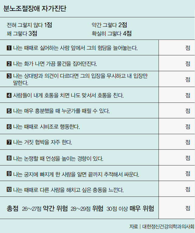 분노 장애 증상 테스트는 사람들이 분노를 어떻게 관리하는지 보여주는 테스트입니다. 사람들은 분노를 다루는 방식이 다릅니다. 화를 참지 못하는 사람은 이상한 말을 하고 난폭하게 행동합니다. 이 테스트는 사람이 자신의 분노를 조절하는 데 어려움을 겪고 있는지 여부를 보여줄 수 있습니다.분노 장애 증상 검사
